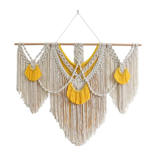 There's something magical about a space that feels collected, not decorated. Our hand-woven tapestry complete with cascading tassels brings warmth, movement, and artisan soul to your walls. Perfect above a bed, sofa, or entryway.
